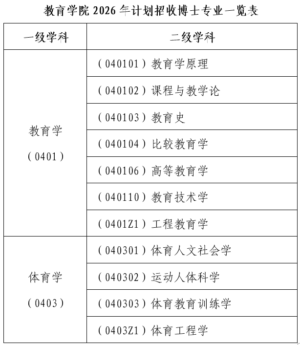 2026年lol下注平台 计划在教育学和体育学两个一级学科下设的二级学科招收全日制学术学位博士生。