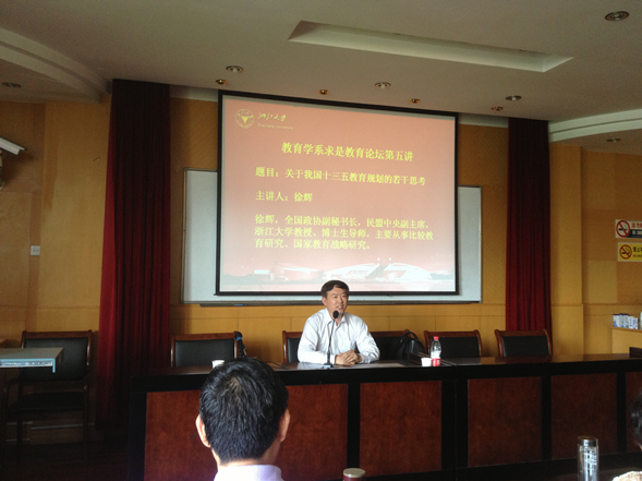 学术报告厅座无虚席。全国政协副秘书长、民盟中央副主席,浙江大学教授、博士生导师徐辉应教育学系之邀,主讲“求是教育论坛”第五讲——“关于我国十三五教育规划的若干思考”,吸引众多院内外师生。
