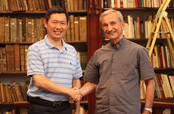 8月5日上午,傅马利院长与徐小洲院长达成合作意向后亲切握手