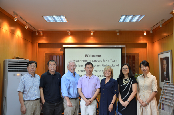 对Richard L.Hayes教授一行的来访表示热烈欢迎。周丽君教授对体育学系的历史沿革、专业设置、课程体系、人才培养及国际交流合作进行了详细介绍。Richard L.Hayes教授对体育学系的当前建设情况以及所取得的成绩深表赞赏,并介绍了南阿拉巴马大学在健康体育教育和休闲研究等方面的学科建设现状。在接下来的洽谈中,双方就可达成合作的领域深入交换意见,并提出一系列创新性设想,以实现覆盖教师和学生的各个层面的交流合作。会谈的最后,双方都表达了对正式达成合作的强烈期待,希望后期进一步商讨和确定合作细节。 会谈结束后,双方互赠纪念品并合影留念。