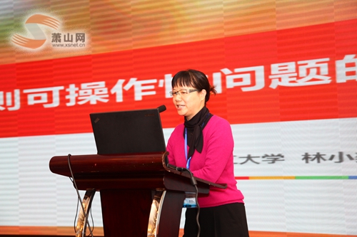 大会主题“创新、活力、联动、包容——‘互联网+’与中华武术”,包含四个板块即湘湖“讲”武、湘湖“论”武、湘湖“习”武和国家武术研究院专家委员会年会,探讨中华武术传承与发展进程中的机遇、挑战、阶段性难题与重点任务,集中发挥专家学者力量,探寻传统武术现代化发展的特征和规律,为接下来的全面开展、加快加大武术推广工作提供科研支撑与保障。作为湘湖“讲”武——国际武术名家高峰论坛的四名主题发言专家之一,林小美教授做了《武术套路竞赛规则可操作性问题的反思》的学术报告。武术竞赛是推动武术发展的关键渠道之一,武术规则是竞赛实施的重要依据。林教授拥有国际国内大赛总裁判长、裁判长等的丰富执裁经验和武术套路竞赛规则相关的国家和省部级研究成果,她系统阐述了武术套路竞赛规则修改、完善和发展的历程,引导与会者重新认识和深层次剖析竞赛规则可操作性问题,提出从裁判入手提升竞赛规则可操作性的设想。当天,有体育人文社会学的博士生、民族传统体育的硕士生和武术专业本科生和硕士生听取了四个大会报告并积极参与了研讨,2014级、2016级武术专业本科生还为大会带来太极拳、太极扇、双刀、双剑及集体刀术等五个项目的精彩展演,文武兼备的求是学子,引起现场瞩目。