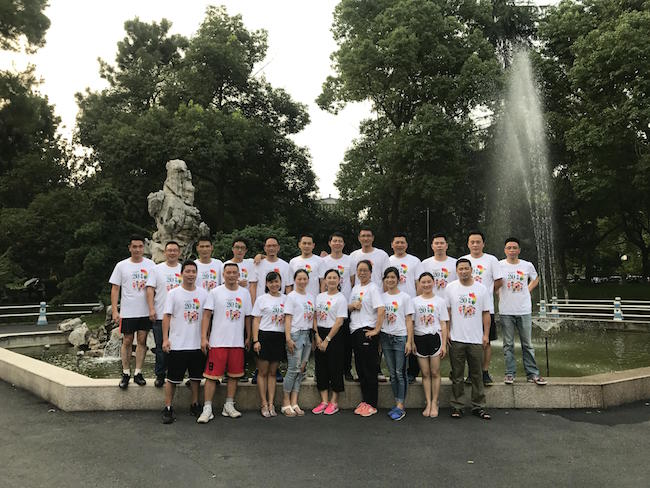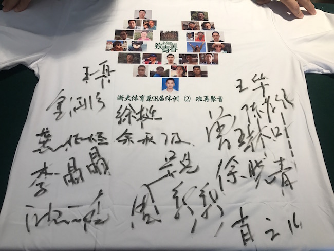 筹备组的同学早早就为全班同学订制了特色的纪念班服――印着20年前军训集体合影和今年个人照片的白色T恤文化衫。
