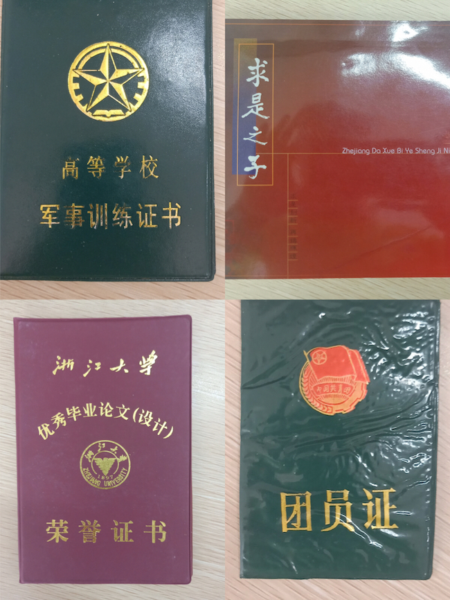 杭大的入取通知书,浙大的第一批学生证、团员证、毕业纪念册、奖学金证书、优秀毕业论文证书,这一份份值得纪念的文本让每个同学都打开了记忆,不仅回想起自己的学号,连同学的学号和成绩单都准确地回忆了起来。