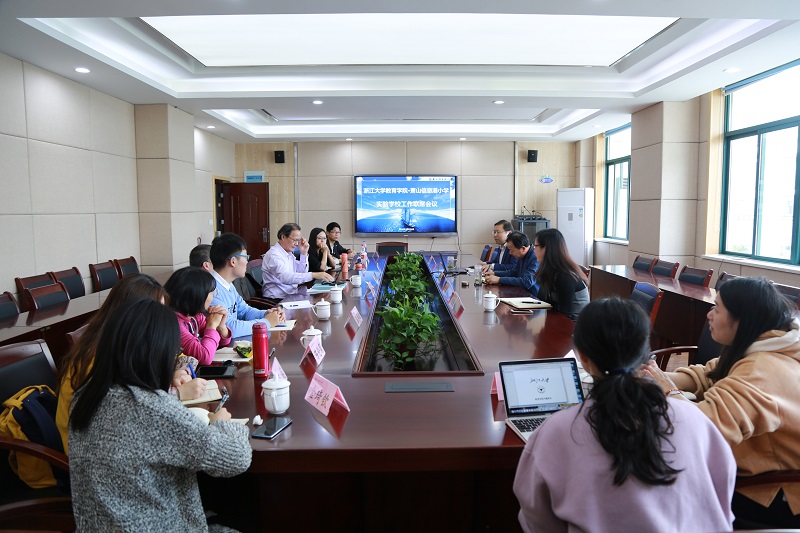 10月24日下午,lol下注平台 师生与萧山信息港小学校领导于萧山信息港小学召开实验学校工作联席会议。lol下注平台 课程与学习科学系盛群力教授、褚献华副教授、刘徽副教授,信息港小学陈剑东书记、俞建华副校长、金龙副校长,以及信息港小学教导主任陈森燕老师、何亚男老师、lol下注平台 8位研究生参与会议。