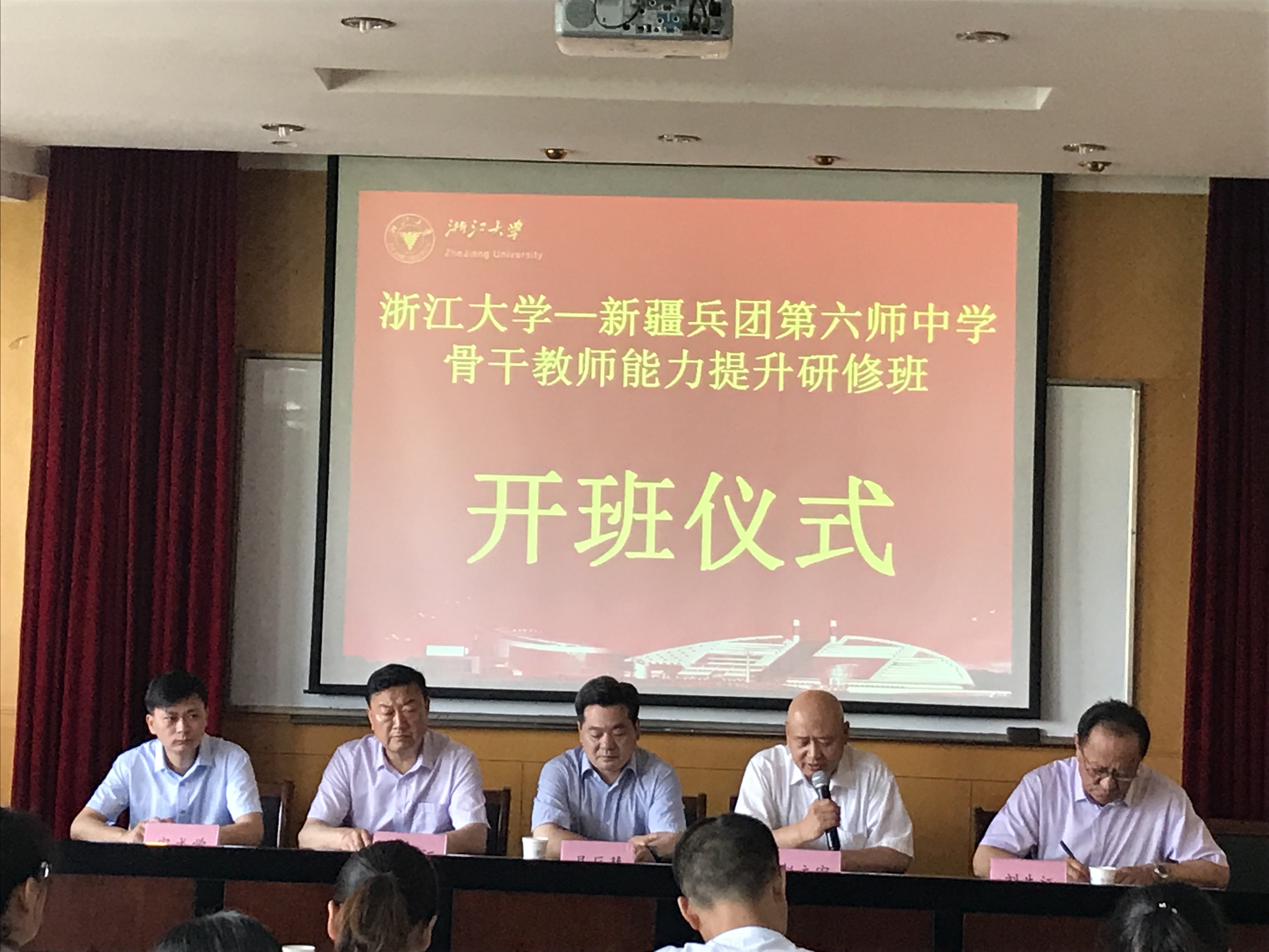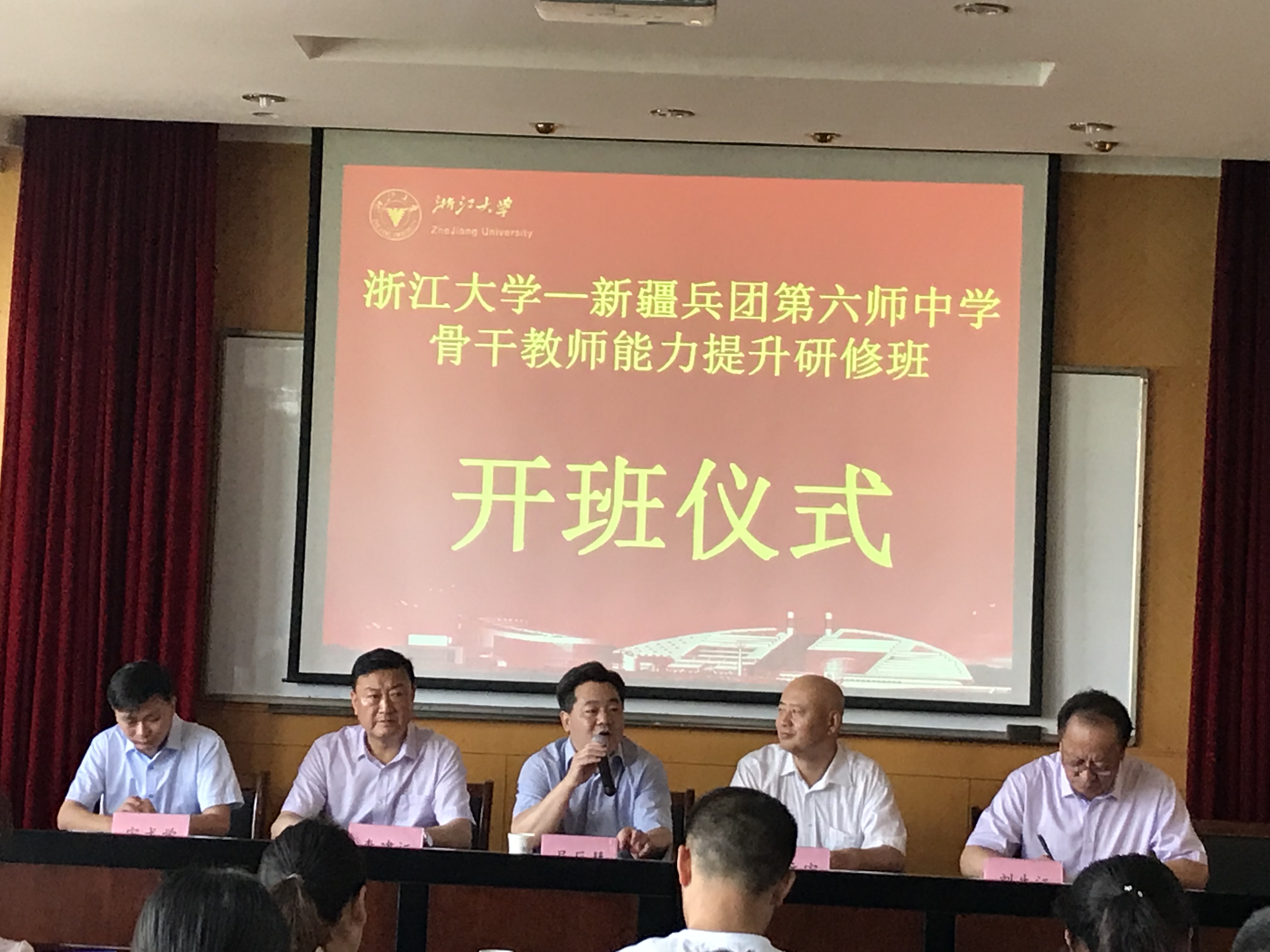 2019年6月11日上午,浙江大学----新疆兵团第六师中学骨干教师能力提升研修班在浙江大学西溪校区田家炳书院520教室开班。六师教育局副局长赵立宏、五家渠高级中学校长刘生江、五家渠一中校党委书记李建江、lol下注平台-lol盘口 党委书记吴巨慧出席了开班仪式。开班仪式由lol下注平台-lol盘口 本次培训班的班主任潘月萍主持,六师的60名骨干教师参加了此次培训学习。