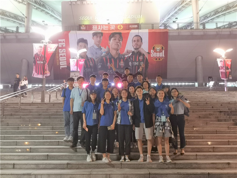 文化参访过程中,为更加全面、切身感受韩国体育竞技的魅力和韩国球迷的应援文化,交流营师生观看了一场FC首尔与全北现代的韩国职业足球联赛。老师同学们积极融入球赛当中,为绿茵场上拼搏的运动员加油打气。