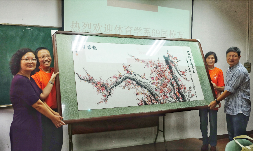 10月6日-8日,体育学系1969届毕业50周年同学会在西溪校区举行。7日上午,40余位校友齐聚西二226会议室,与恩师、同窗再叙情谊。lol下注平台 副院长周丽君教授、体育学系党总支书记沈国平老师分别代表院系对“回家”的校友们表示欢迎,为校友们颁发毕业纪念证书,并致以美好的祝福。校友代表袁裕帆老师向师生汇报了校友们毕业后的发展和现状,并表达了对母校的眷恋和对师生情谊的感怀。同学会上,大家再次聆听昔日老师的谆谆教诲,记忆仿佛回到50多年前的课堂。最后,1969届校友共同为体育学系赠送画作,并祝愿母校、母院欣欣向荣。