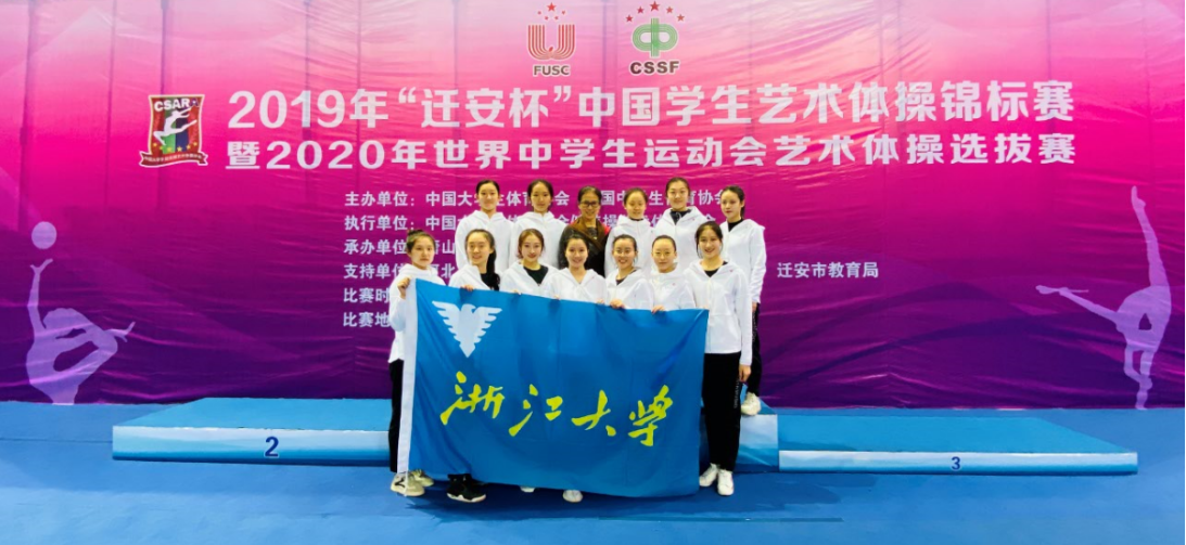 1月27至12月1日,2019年“迁安杯”中国学生艺术体操锦标赛于河北省迁安市举行,来自全国27所高校艺术体操队伍参赛。浙江大学艺术体操代表队由lol下注平台 体育学系11名同学组成,并由单亚萍老师带队,共参加了14个项目的比赛,最终获体育院校和高水平两个组别的集体和个人项目共7金2银5铜。