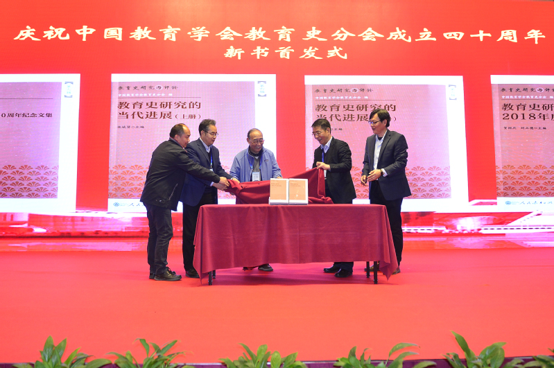 随后,大会举行“庆祝中国教育学会教育史分会成立四十周年新书首发式”,田正平教授、张斌贤教授、人民教育出版社教育编辑室主任刘立德编审、顾建民教授、温正胞教授共同为四十周年特辑新书揭幕。