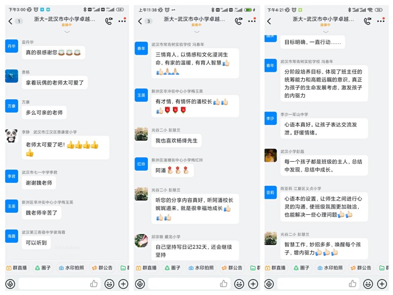 线上培训既是疫情防控常态化趋势下教育培训的尝试,更是教育数字化转型的必然趋势。在lol下注平台-lol盘口 与武汉市中小学校长教师继续教育中心相关领导与专家的指导下,培训班取得了预期的效果。学员们表示,尽管此次培训是在线培训,但收获与触动不比线下培训少,通过本次培训不仅从中收获了班主任工作的专业知识和管理技能,更在一次次的交流与研讨中获得了感动与友谊,为后续工作开展提供了满满能量。