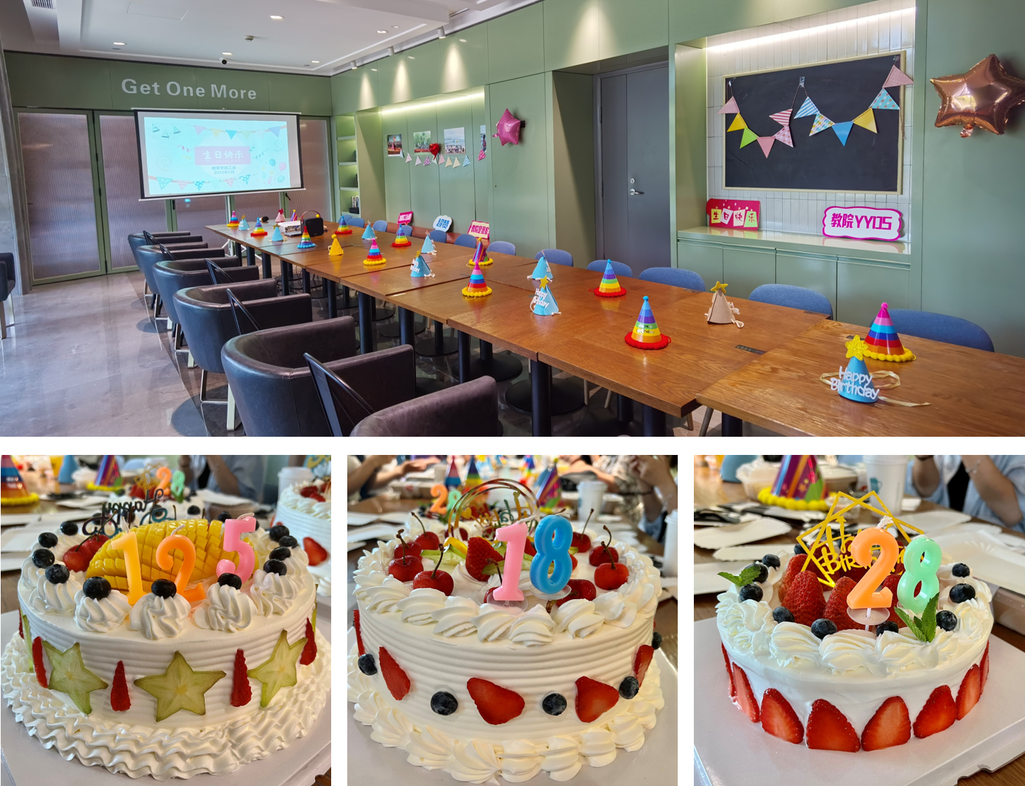 生日会准备了“125”“18”和“28”三个生日蛋糕,为上半年生日的教职工们庆生的同时,也为浙江大学送上125周年的生日祝福。大家围在一起吹蜡烛、吃蛋糕,许下对未来的美好祈愿,共同分享生日的喜悦。