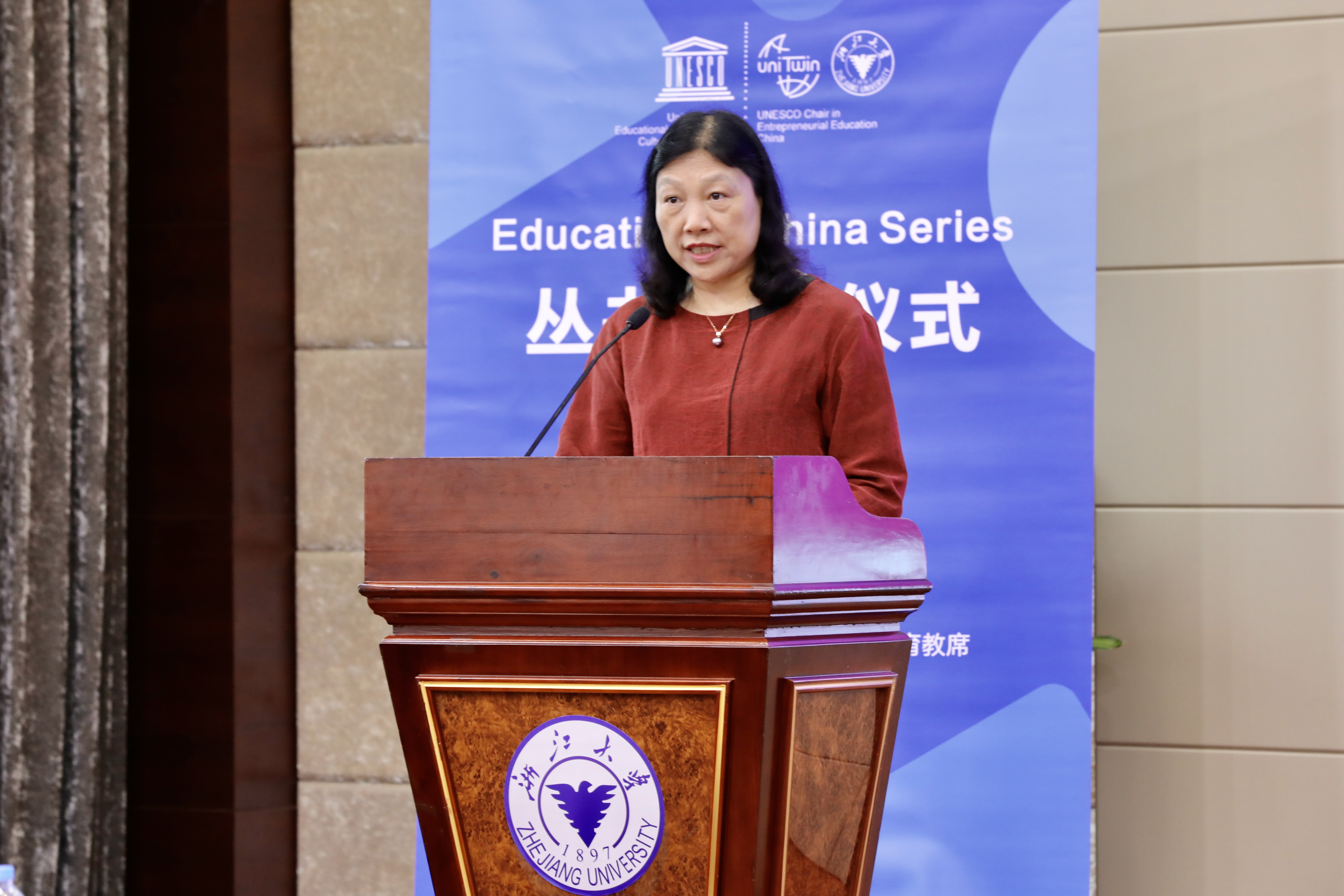 浙江大学党委常委、副校长何莲珍代表学校对丛书的问世表示衷心的祝贺。她指出,Education in China Series(《中国教育系列丛书》)是我国首套以英文全面阐释中国改革开放四十年教育发展的鸿篇,它的出版发行,既适逢我国哲学社会科学发展迈向新阶段、学校开启哲学社会科学发展新征程,也是我国教育对外开放迈向新征程、学校深化教育对外开放的重要成果。期待以该丛书的出版为契机,进一步开展密切合作,更好地回答中国之问、世界之问、人民之问、时代之问,更好地彰显中国之声、中国之理和中国之路。