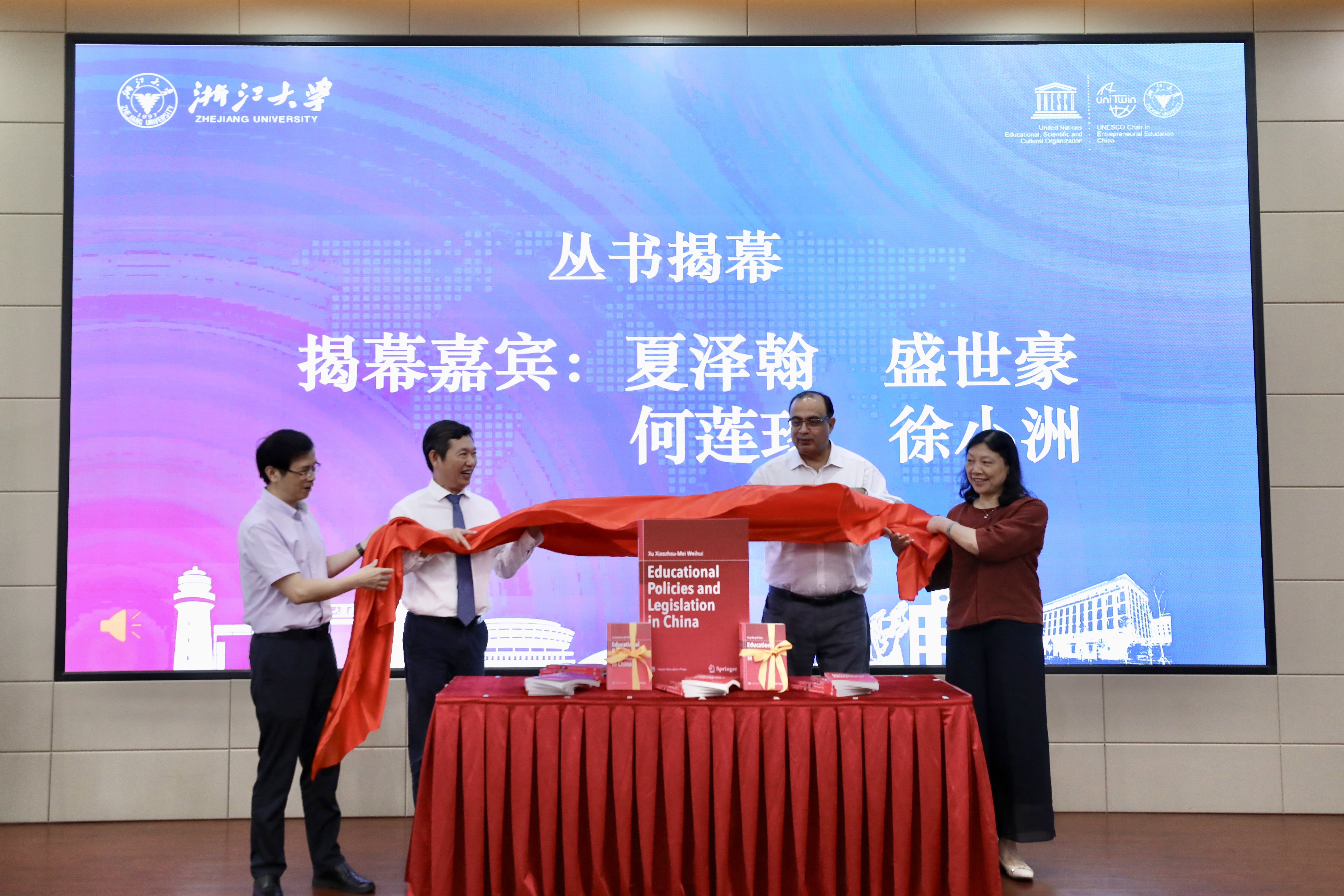 为传播新时代中国教育思想与实践,讲好中国教育故事,由徐小洲教授主编、中国高等教育出版社与德国斯普林格出版社(Springer)联合出版的Education in China Series(《中国教育系列丛书》)发行仪式于2022年7月10日在杭州举行。发布会由联合国教科文组织浙江大学创业教育教席、lol下注平台-lol盘口 、浙江传媒lol下注平台 等单位联合主办。联合国教科文组织驻华代表处主任夏泽翰,浙江省社科联主席、省委宣传部副部长盛世豪,浙江大学副校长何莲珍,联合国教科文组织浙江大学教席主持人、浙江传媒lol下注平台 校长徐小洲,高等教育出版社副总编龙杰等致辞。中央广播电视总台浙江总站站长张国飞、副站长胡作华,浙江省政协文化文史和学习委专职副主任周雷,新浪浙江总编余丹凤,凤凰卫视浙江公司总裁葛继宏及浙江大学、浙江传媒lol下注平台 相关部门负责人出席会议。丛书发行仪式由lol下注平台-lol盘口 常务副院长阚阅教授主持。