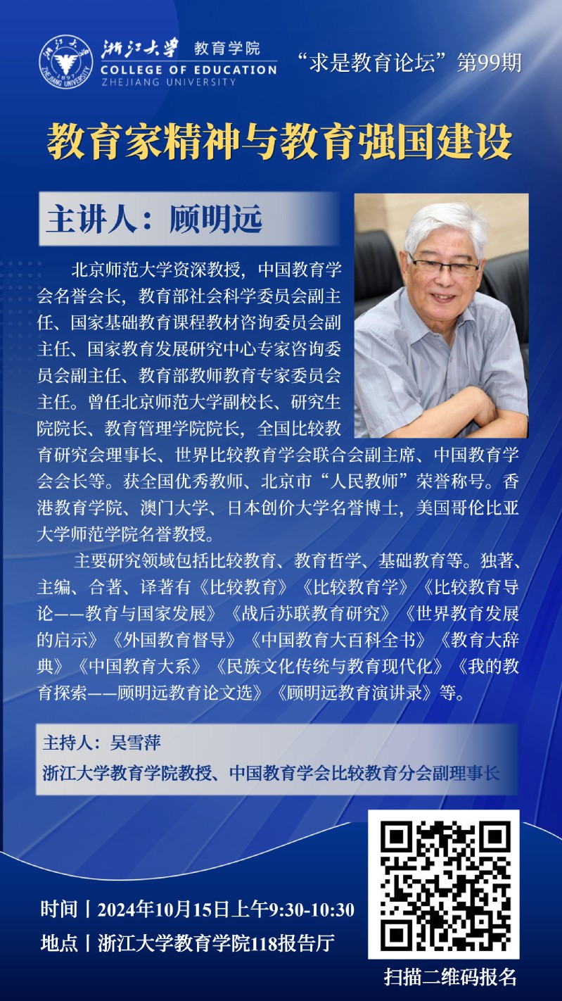 “求是教育论坛”第99期丨顾明远先生专题讲座:教育家精神与教育强国建设