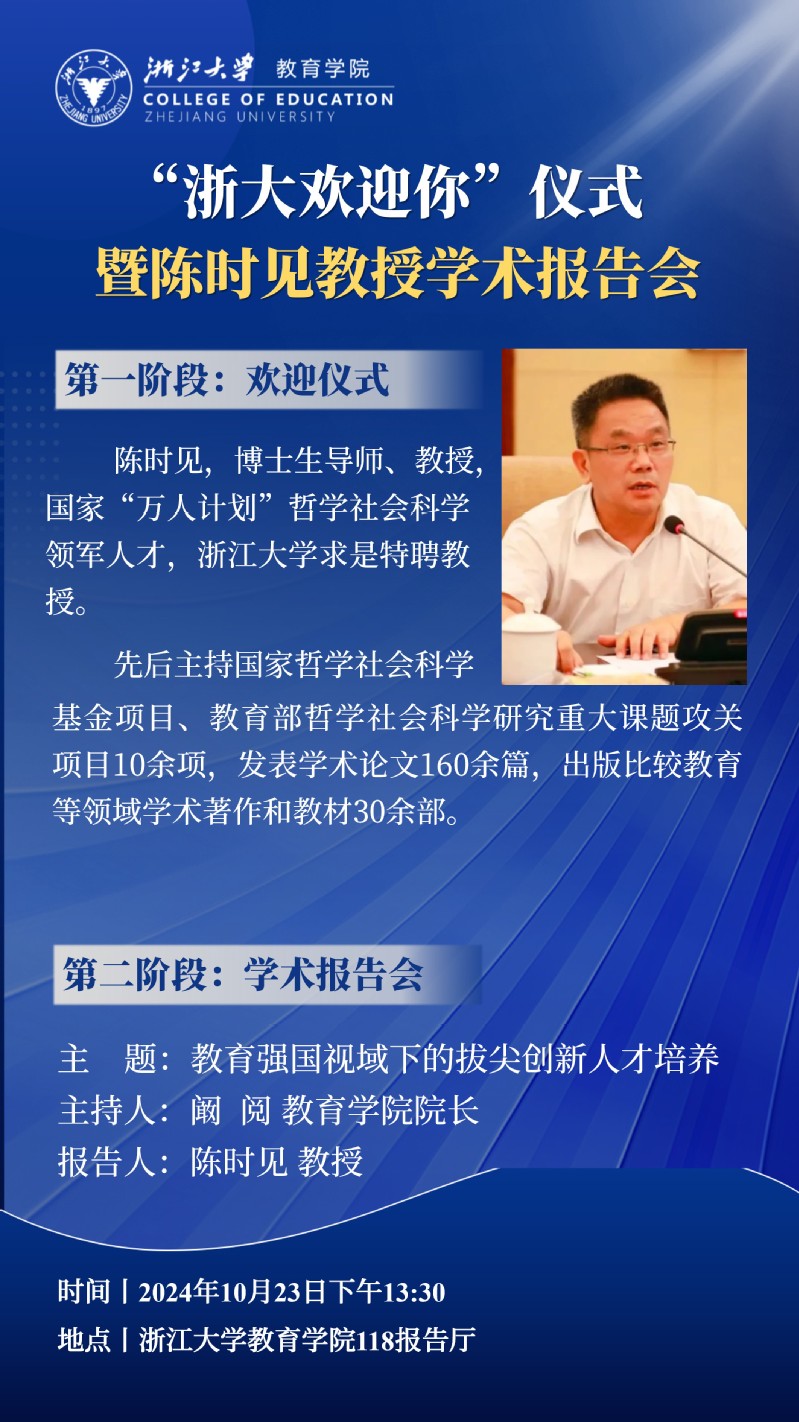 “浙大欢迎你”仪式暨陈时见教授学术报告会:教育强国视域下的拔尖创新人才培养