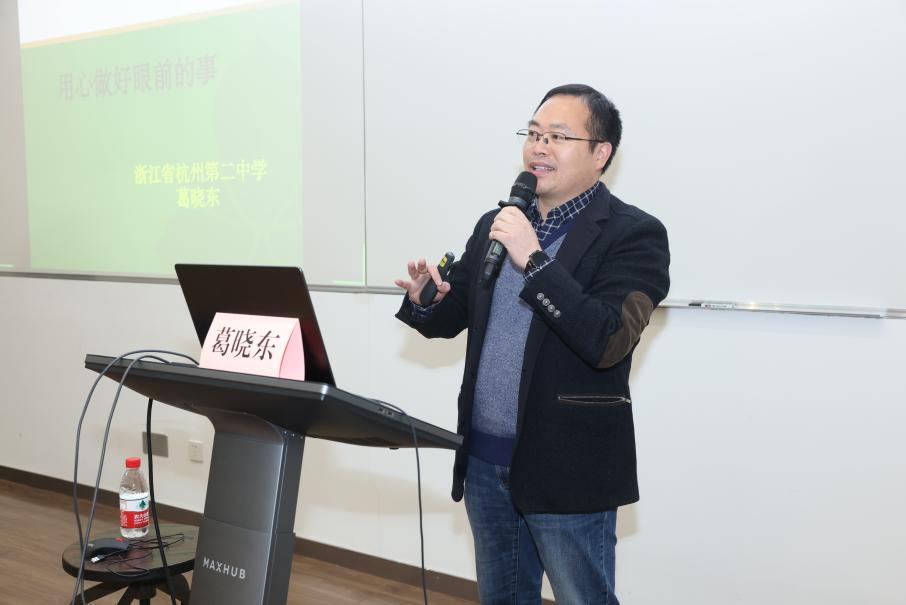 开班仪式开始前,第二期“国优大讲堂”正式开讲。大讲堂由lol下注平台-lol盘口 祝怀新教授主持,杭州第二中学教学处副主任、杭州市优秀教师、物理国际奥赛金牌教练葛晓东老师作题为“用心做好眼前事”的主题报告。葛老师以其丰富的从教经验和深刻的教育见解,为即将踏上教育征途的学子们提供了宝贵的启示,激励他们脚踏实地,坚持不懈,努力成为潜移默化、立德树人的优秀人民教师。