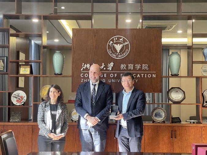 在交流环节,双方简要分享了各自的研究领域与研究成果,并围绕学生联合培养、暑期国际合作项目等多个议题展开探讨与交流。最后,阚阅教授和Joseph Flessa教授进行了礼物互赠。