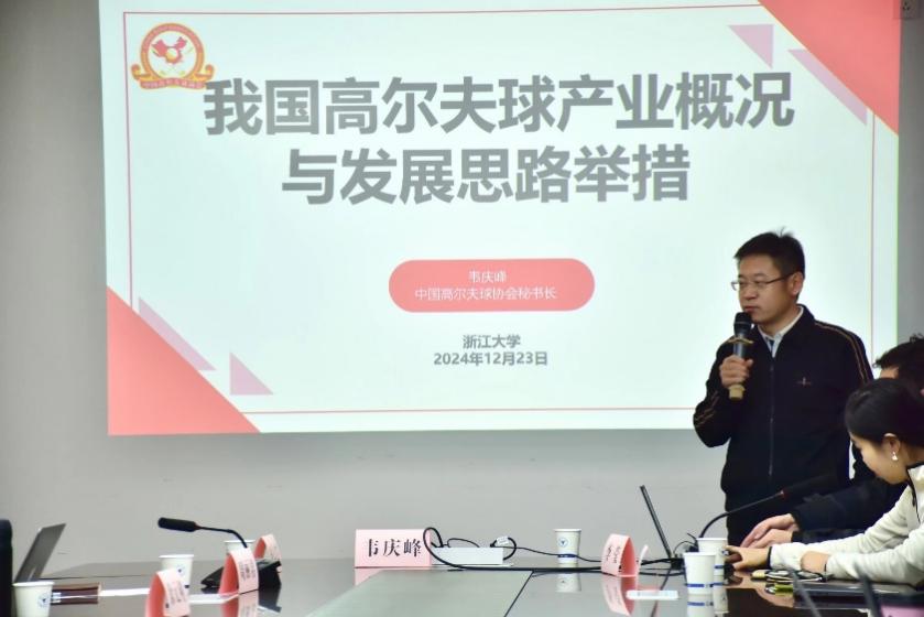 2024年12月23日,中国高尔夫球协会秘书长韦庆峰博士到访lol下注平台-lol盘口 ,为师生做讲座,并就《中国高尔夫球产业报告》(以下简称《报告》)工作进展进行座谈。