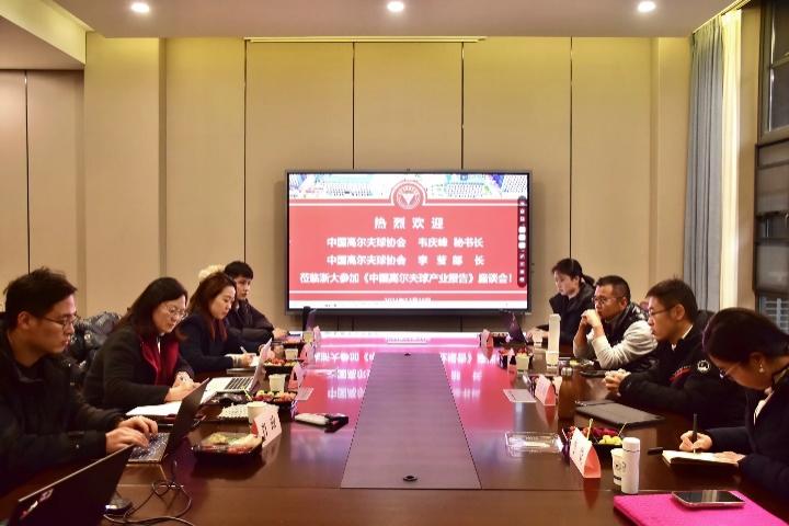 讲座结束后,中国高尔夫球协会秘书长韦庆峰博士、中国高尔夫球协会战略宣传部部长李莹、西湖国际高尔夫乡村俱乐部董事长鲍春雷等人与浙江大学高尔夫球产业周丽君教授团队展开座谈。座谈会聚焦于正在编制的《中国高尔夫球产业报告》,就《报告》内容进行了深入探讨。