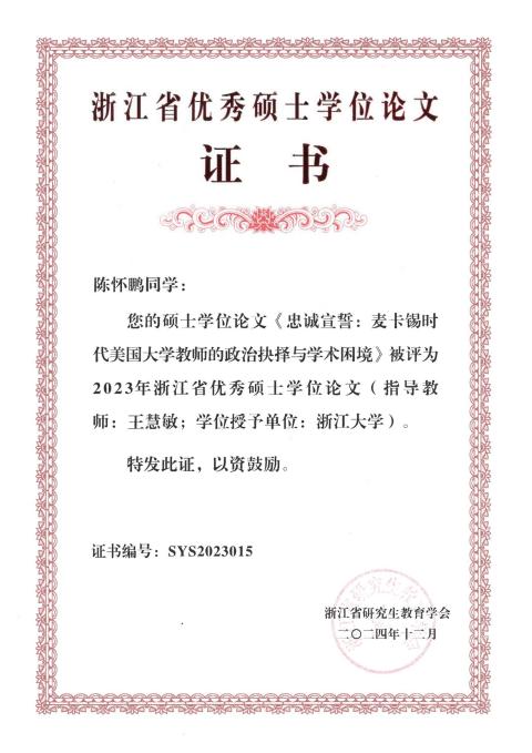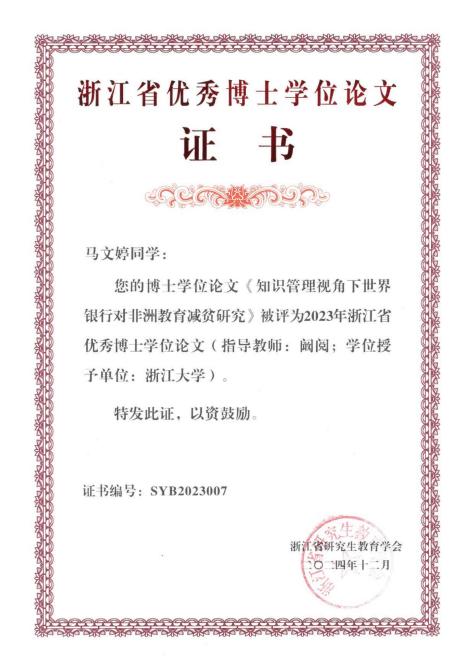 获评2023年度浙江省优秀博士学位论文、硕士学位论文各1篇,2023年度浙江大学优秀博士学位论文1篇。