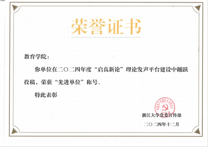 lol下注平台 获评“2023年浙江大学研究生招生工作先进集体一等奖”。