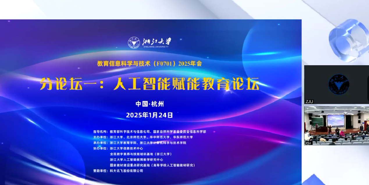 为深入贯彻落实全国教育大会及《教育强国建设规划纲要(2024-2035年)》精神,推动教育学与信息科学的深度交叉基础研究,促进我国教育数字化转型,助力教育强国建设,2025年1月24日,“数智赋能、教育向新”教育信息科学与技术(F0701)2025年会在浙江大学紫金港校区成功举办。