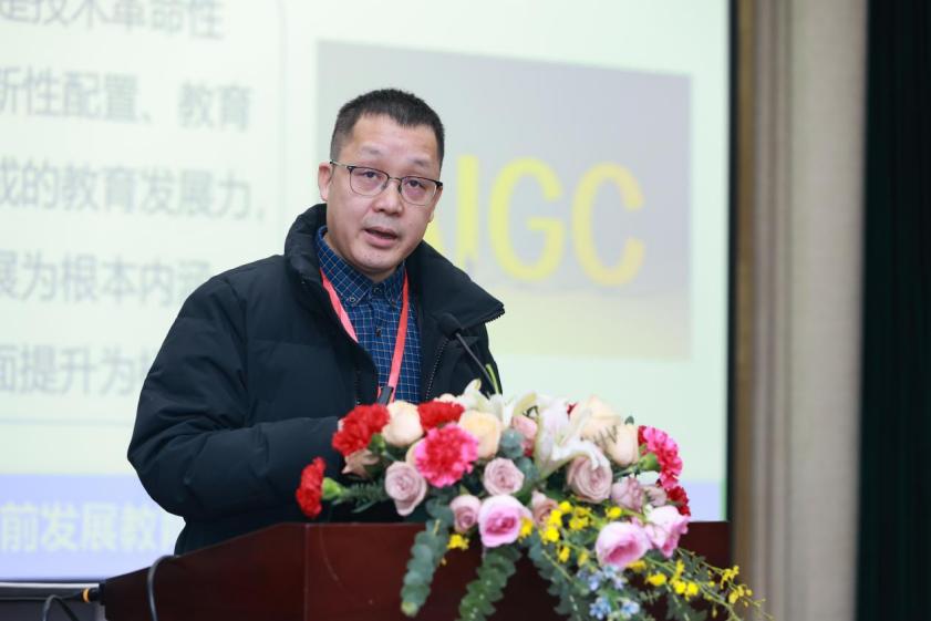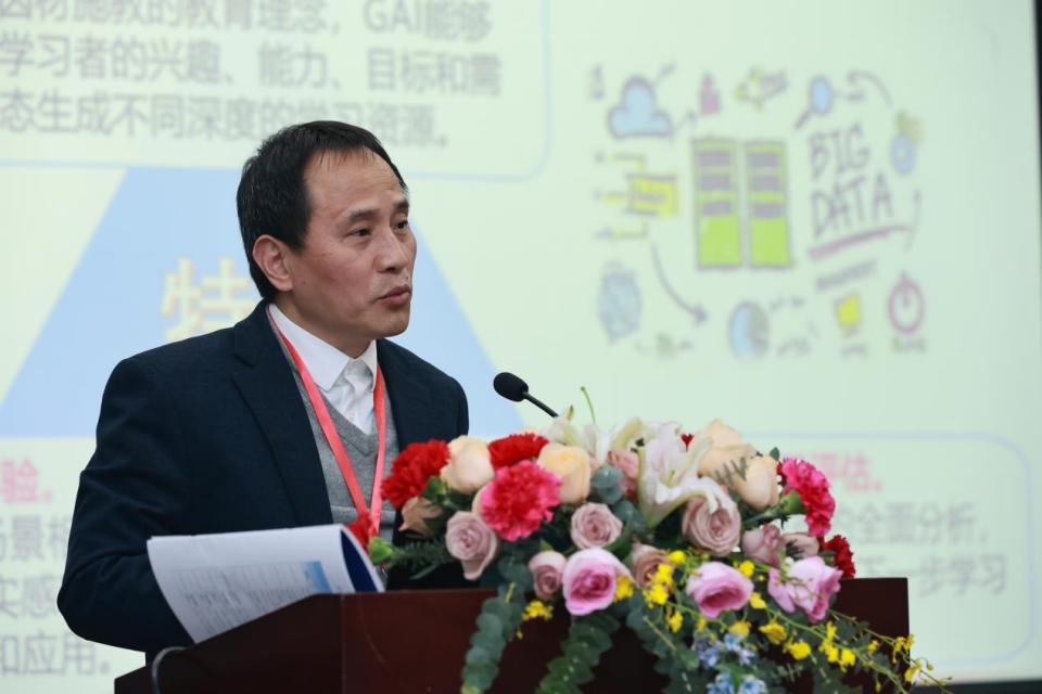 中国科学技术大学信智学部副部长陈恩红教授阐述了教学范式的发展历程和智能教育的变化趋势。他从人工智能融入教育教学全场景、构建具备自然交互能力的数字教师、实现面向教育教学场景的世界模拟器三个方面提出了展望,为智能教育的未来发展提供了重要参考。