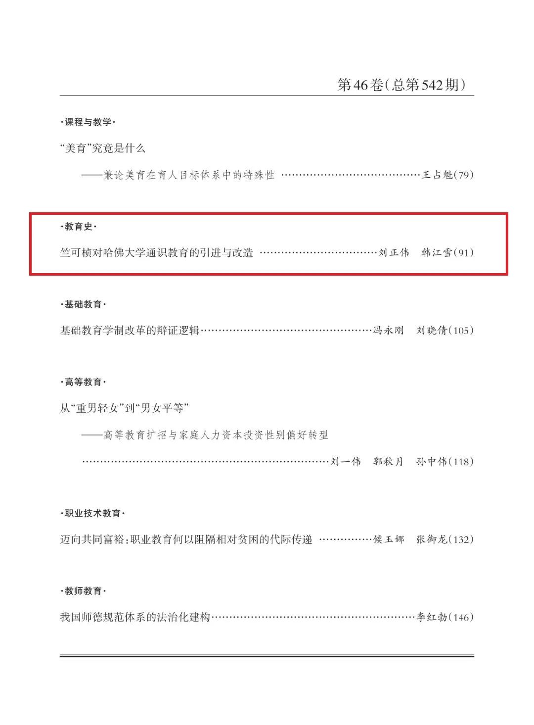 lol盘口 课程与学习科学系刘正伟教授与课程与教学论博士研究生韩江雪的学术论文《竺可桢对哈佛大学通识教育的引进与改造》在2025年第3期《教育研究》上刊发。