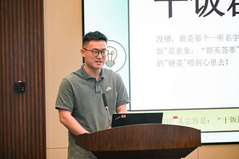 邹昱老师引领的“干饭队”通过妙趣横生的介绍视频再次引燃现场氛围。通过思想引领、专业培养、学术创新和实践育人四方面,展现了师生共同合作的友爱画面。“干饭用盆,科研用魂”是团队精神,“吃饱了才有力气搞科研,干饱了才有灵感写论文”是团队口号,“白天实验室里卷数据,深夜会议室里啃文献”是团队常态。将学生视为在一个领域内钻研的合作者,无关乎年龄的大小,这是其管理团队的要诀。