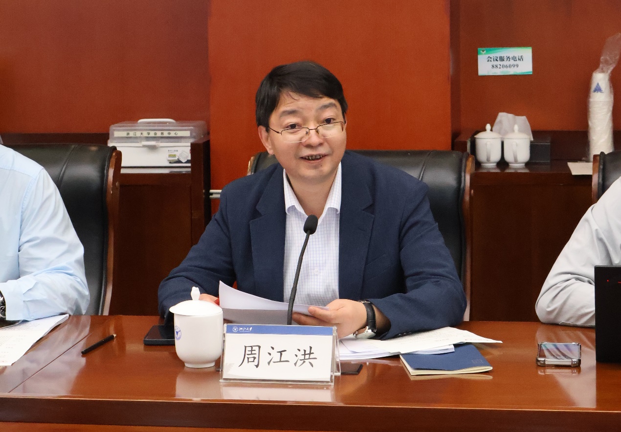 浙江大学副校长周江洪教授致辞。周江洪副校长对专家的到来表示热烈欢迎,并指出了当今智能时代所面临的教育三重困境,介绍了浙江大学在人工智能与教育融合方面所取得的显著成果。周江洪副校长强调了“人工智能和教育深度融合研究”课题肩负的三大破题使命及其重要意义,期望课题组可以广泛吸收专家意见,形成高质量研究成果。