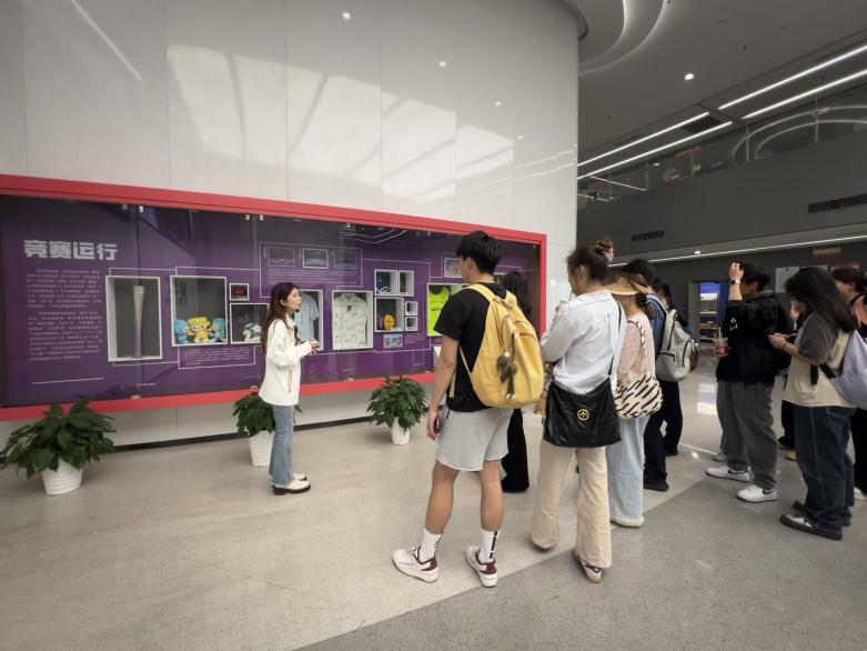 之后,师生们来到黄龙场馆群亚运展陈室,兴致昂扬地学习了黄龙各场馆为保障杭州亚运会、亚残运会的全阶段工作流程,包括方案策划、运行指挥体系、测试演练流程、交通物流保障、用餐保障、电力保障、志愿服务等,深刻地感受到了体育场馆管理工作的复杂与不易。