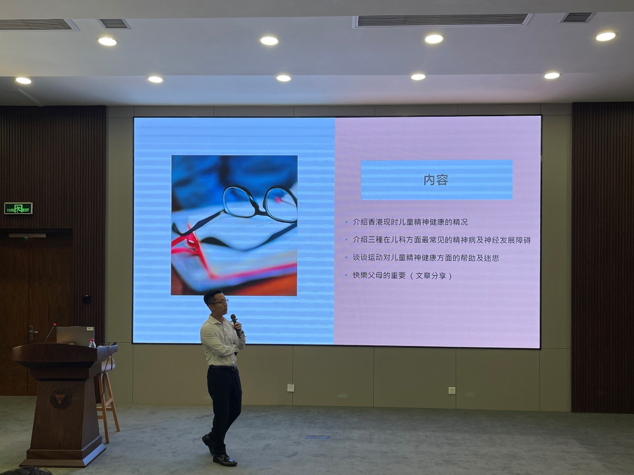 谢采扬副教授以《运动如何影响儿童的精神健康》为主题,围绕香港儿童精神健康现状、儿科领域最常见的三种精神疾病与神经发育障碍、运动对儿童精神健康的帮助与迷思、以及快乐父母的重要性四大主题展开讲述,并介绍了在心理健康方面常用的研究工具,涵盖问卷调查、生理指标监测、行为表现测试、生化分析等多维度评估体系。