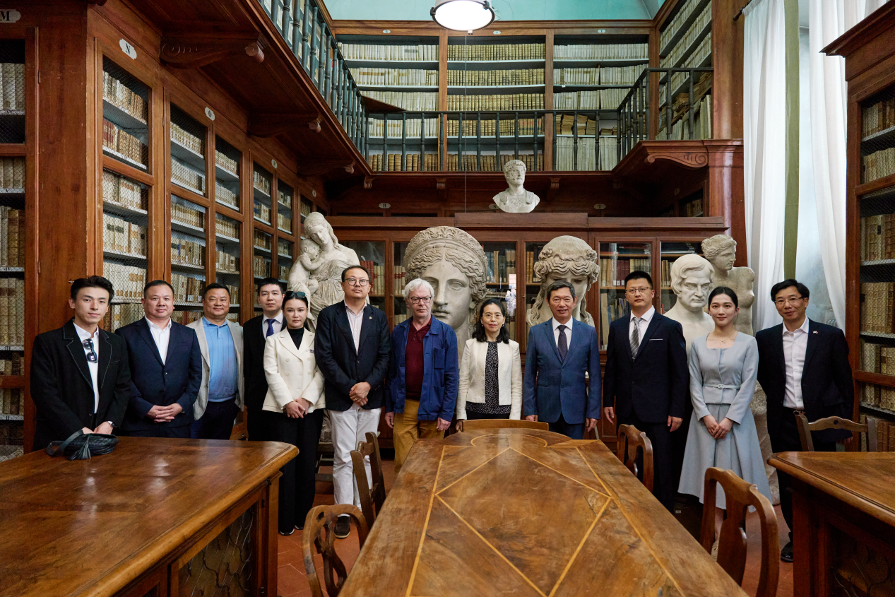 捐赠仪式结束后,乔瓦尼·伊奥万校长陪同与会嘉宾参观了佛罗伦萨美术lol下注平台 图书馆、教学楼及展览馆等场所,介绍lol下注平台 的发展历史、校园规划、教学场景、留学生教育、艺术藏品等办学情况。与会各方围绕中意文化交流、人才培养、学术研究等合作领域进行深入交流,并达成进一步合作意向。