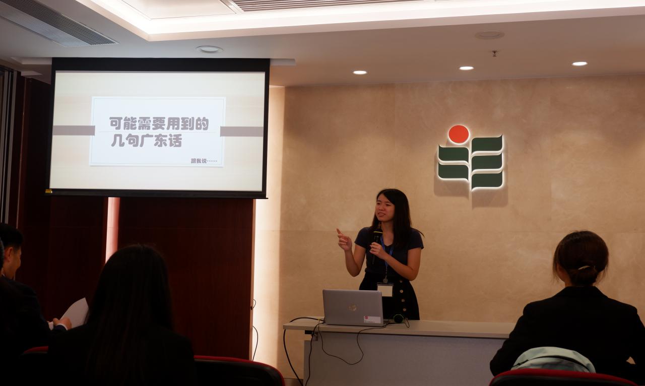 Later, the students, in charge of receiving, brought a lesson to the delegation, teaching some common Cantonese words, such as ‘hello’ and ‘thank you’. They taught with great care, and the students studied hard but fruitfully. The receptionist also indicated that everyone should look at the notes on the back of their badges and learn how to pronounce their name in Cantonese.