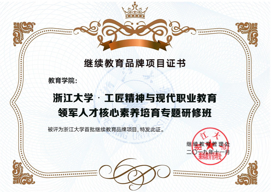 四、浙江大学•工匠精神与现代职业教育领军人才核心素养培育专题研修班