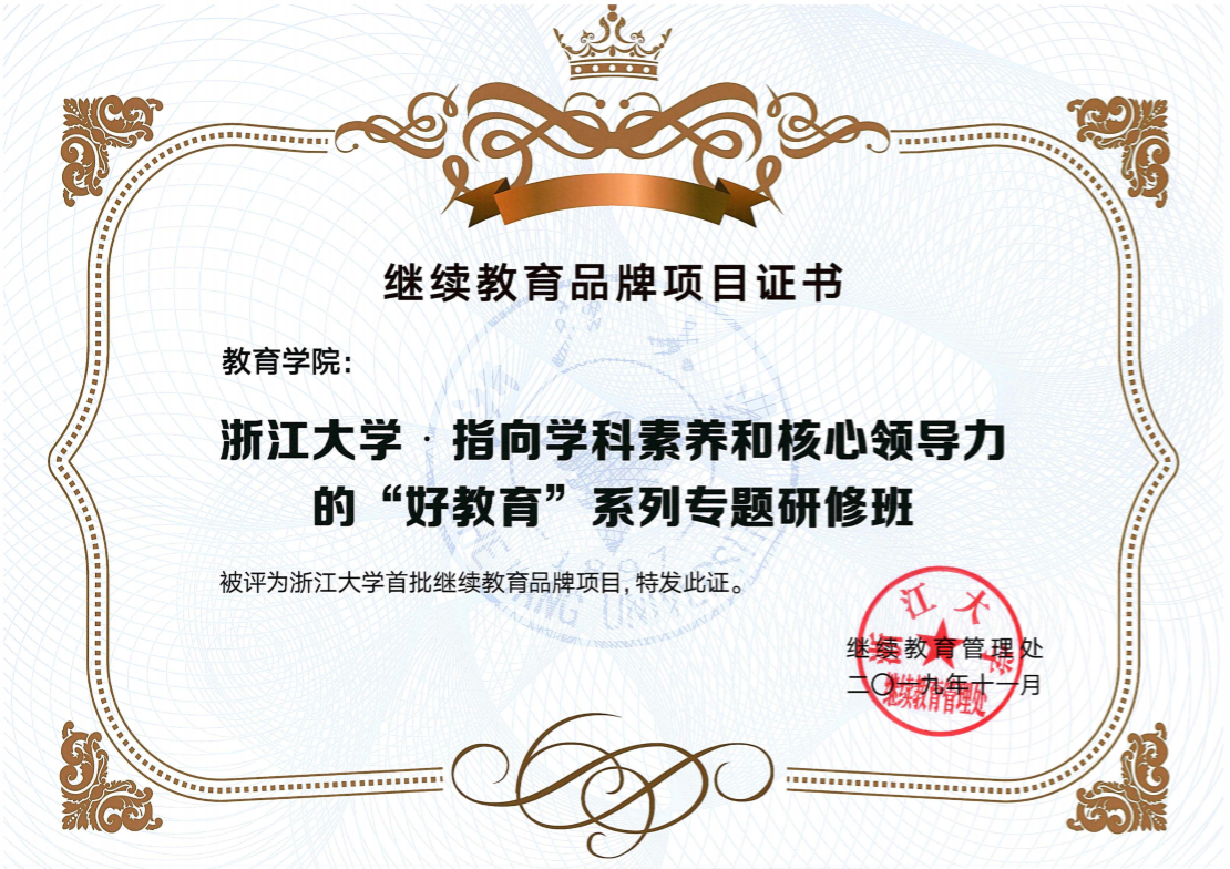 一、浙江大学•指向学科素养和核心领导力的“好教育”系列专题研修班